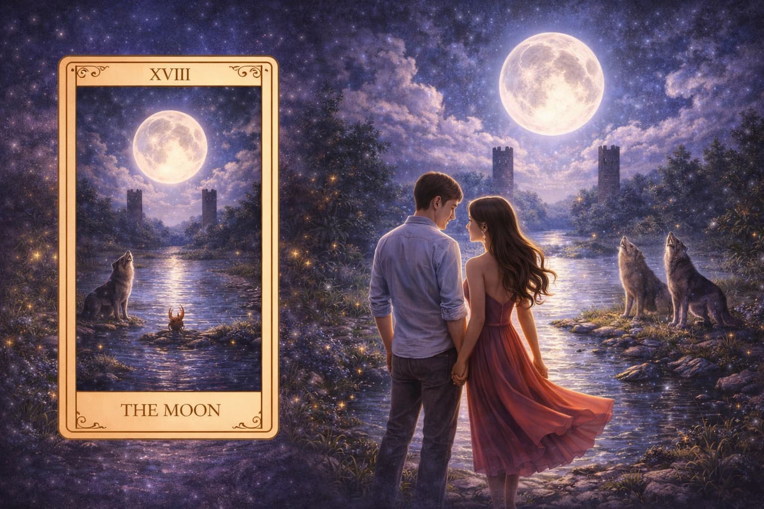 月のカードは、他のカードと重なることで、不安の中身が少しずつ輪郭を持ちはじめます。