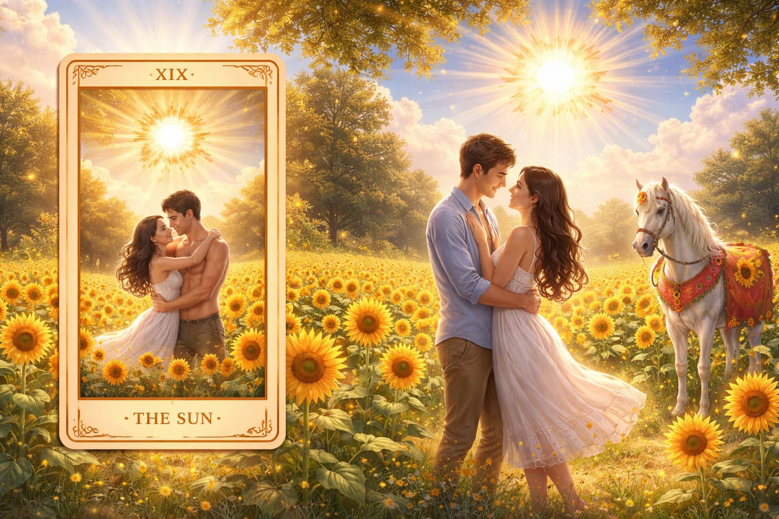 太陽と恋人のカードが並ぶと、お互いの気持ちがはっきりと重なり、関係が前向きに進んでいく流れとして現れることがあります。